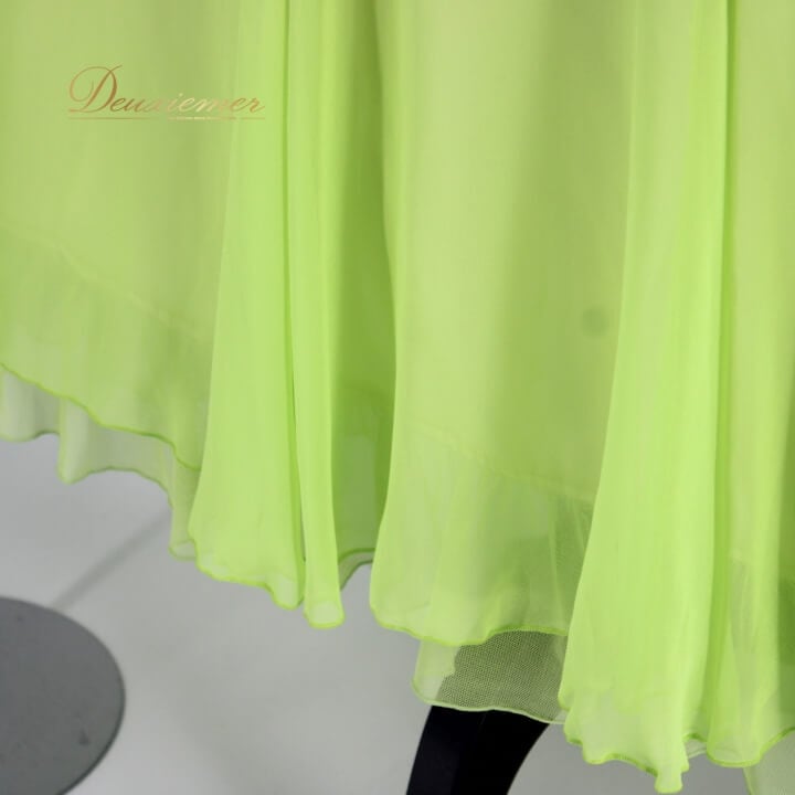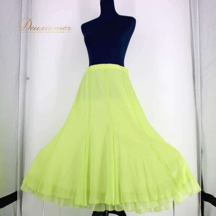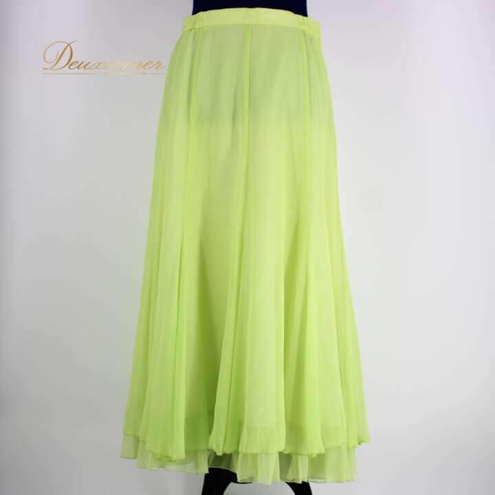 社交ダンス 衣装 スタンダード スカート レッスンウェア レディース オールシーズン Sanline サンリーヌ 黄緑 グリーン系 無地 シンプル 透け感 フレッシュ レディースファッション おしゃれ ダンススカート 柔らかい動き 夏用 軽量 ロングスカート
