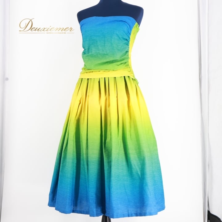 フラダンス 衣装 ツーピース セットアップ 上下セット ブルー系 フラ ダンス グラデーション 青 緑 黄 トップス スカート 鮮やか 明るい ふんわり チューブトップ ハワイアン アロハ グリーン系 イエロー系