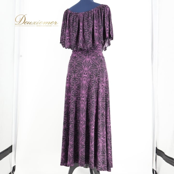 #フラダンス #フラダンス衣装 #ツーピース #セットアップ #ウエア #ダンスウェア #ハワイアン #KuuleiHawaii #ブラック #パープル #総柄 #華やか #柔らかい生地 #動きやすい #ポリエステル #ポリウレタン #女性用トルソー #ダンス衣装 #衣装セット #フラ #ENUTSU