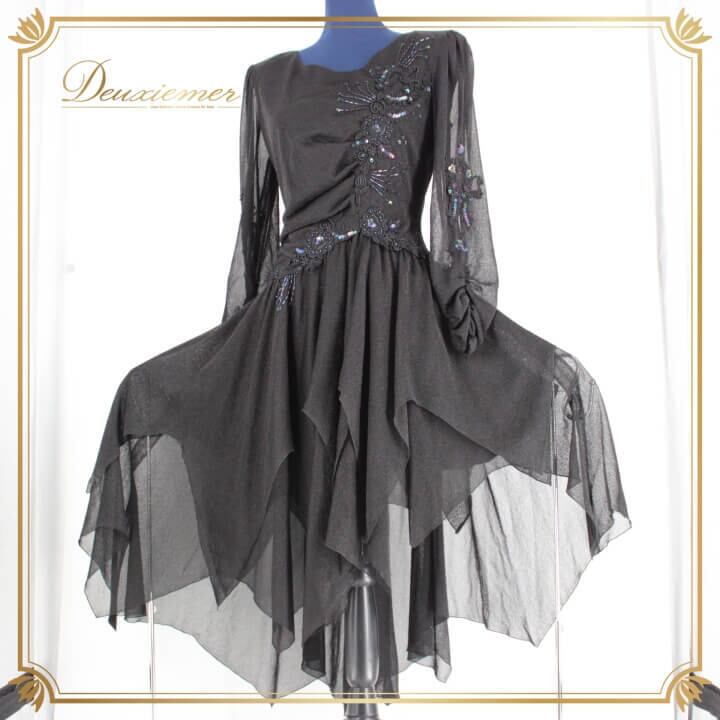 #社交ダンス衣装 #ダンスドレス #モノトーン #ブラックドレス #スパンコール #花柄 #日本製 #ファスナー #肩パッド #ウエスト #レーヨン #ポリエステル #ドレスアップ #ダンスウェア #フォーマル #衣装 #パーティー #トルソー #Mサイズ #ENUTSU