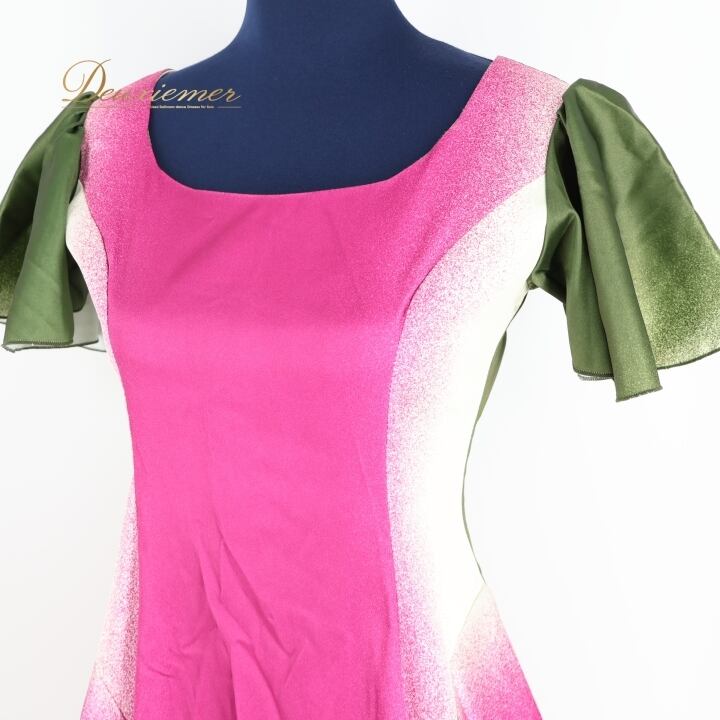 フラダンス 衣装 ワンピース ドレス ピンク系 フラ ダンス 光沢 白 緑 鮮やか 明るい ハワイアン 半袖 華やか 上品 高級感 アロハ グリーン系 ホワイト系