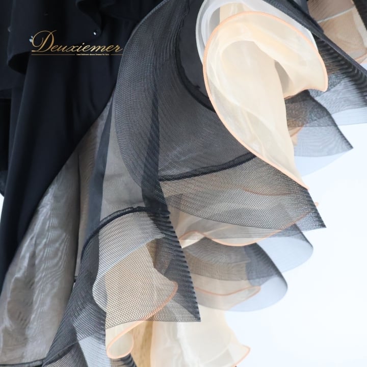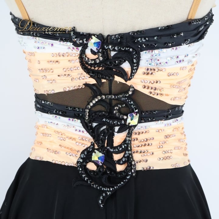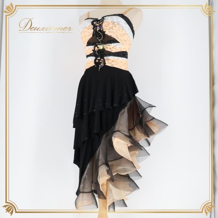 社交ダンス 衣装 チャコット Chacott ラテン ドレス ワンピース フリル レース デモ 競技 ダンス パーティ 発表会 ベージュ系 ブラック系 おしゃれ フリルスカート 日本製 可愛い 競技用 発表会用 ステージ衣装 お洒落 ラテン衣装