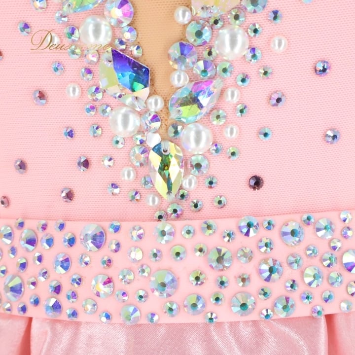 社交ダンス 衣装 Chacott チャコット スタンダードドレス スタンダード ワンピース フロート フリル デモ 競技 ピンク系 パーティ 発表会 スリット リボン かわいい かわいいデザイン 光沢のある生地 日本製 フォーマル 衣装 ドレス 舞台衣装 社交ダンス用 おしゃれ 競技会用 エレガント シンプル パフォーマンス用