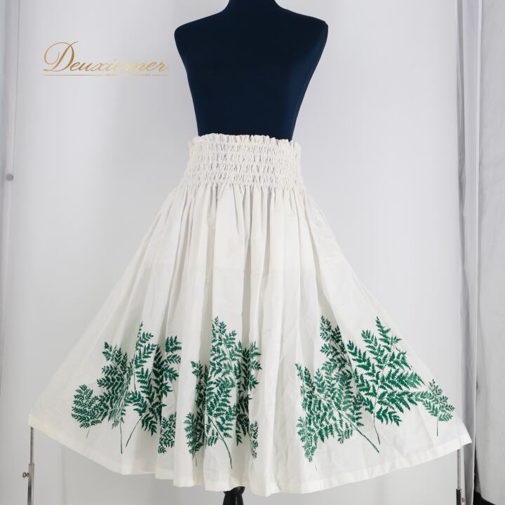 #フラダンス #パウスカート #フラダンス衣装 #ハワイアン #アロハ #ダンス衣装 #ホワイトグリーン #日本製 #カントリースタイル #リゾートファッション #ストリートファッション #サマーコーデ #ウエストゴム #シンプルデザイン #ファッション #ウーマンファッション #春夏ファッション #女性用スカート #トルソー #ENUTSU