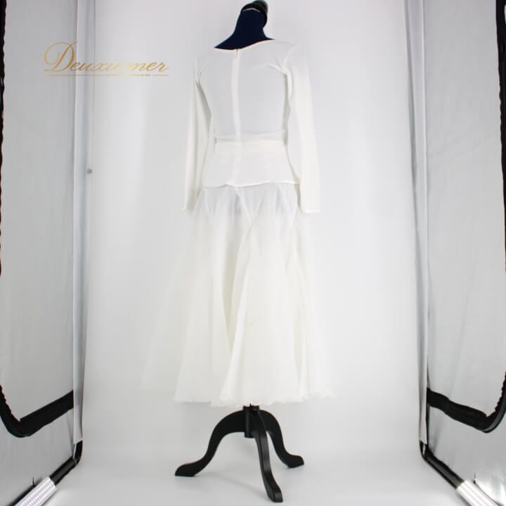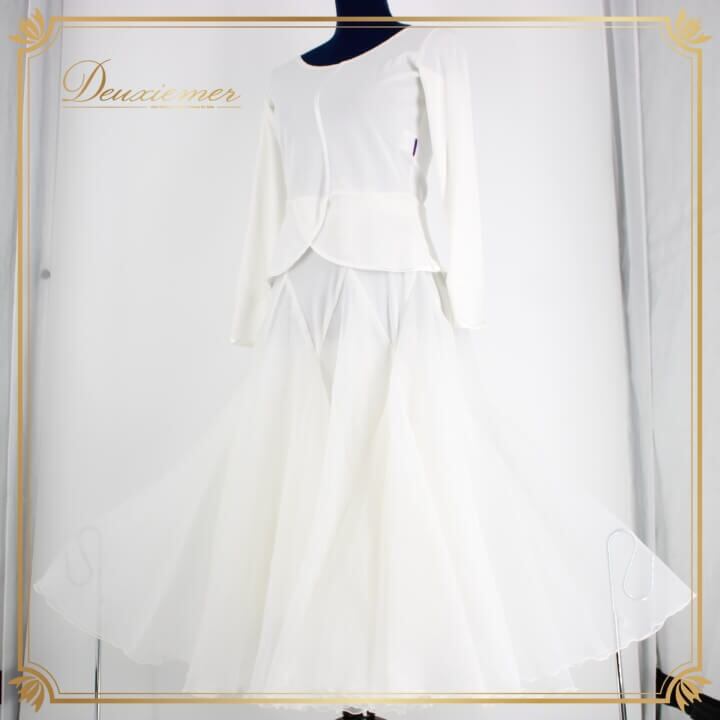 #社交ダンス #ダンス衣装 #ダンスファッション #ホワイトドレス #日本製 #シンプルデザイン #スカートセット #伸縮性 #ダンススタイル #フォーマルウェア #ダンスパフォーマンス #可愛い衣装 #二重スカート #ダンスイベント #自信を持って踊る #トルソー撮影 #女性用衣装 #おしゃれ #ダンス愛好家 #ENUTSU