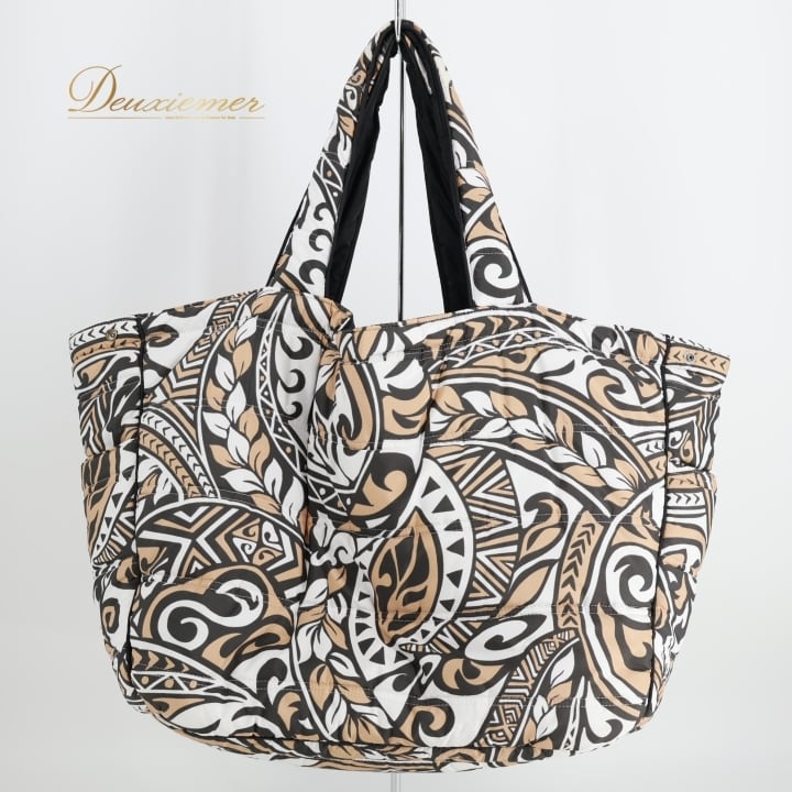 フラダンス 小物 バッグ ブラック系 フララニ フラ ダンス トートバッグ 中綿 大きめ 黒 白 茶 綿入り ハワイアン アロハ Hula Lani ハワイアンプリント ホワイト系 ブラウン系