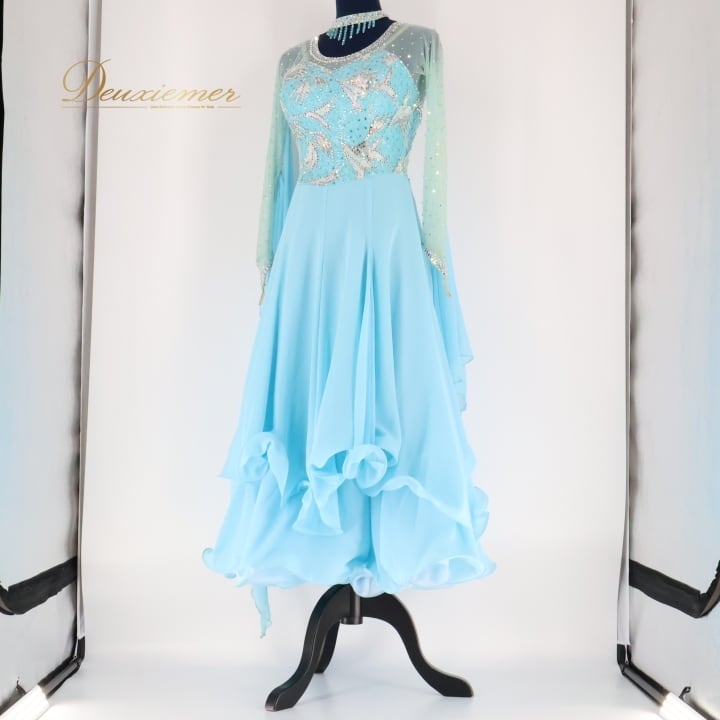 #社交ダンス #ダンス衣装 #ドレス #ワンピース #スカート #日本製 #スカイブルー #軽量素材 #ダンスファッション #女性用 #サイズM #ファッション #トルソー #ストレッチ素材 #パッド付き #背面ファスナー #可愛いデザイン #おしゃれ #ダンススタイル #ENUTSU