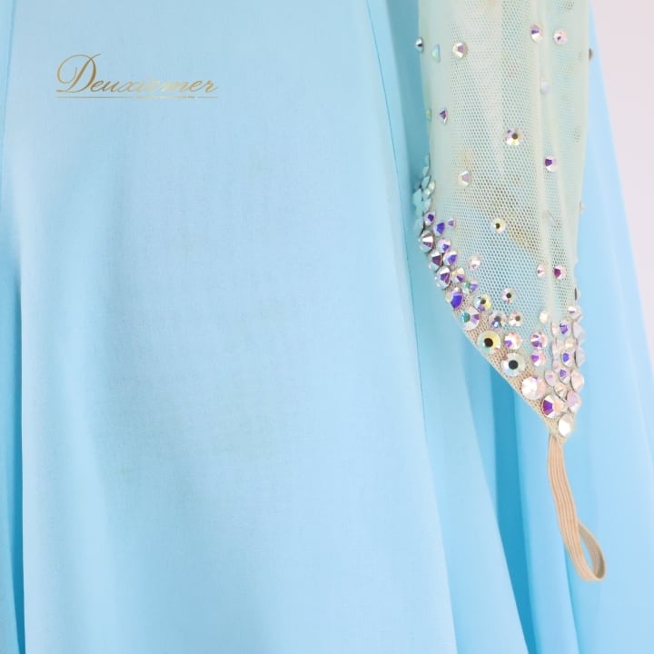 社交ダンス 衣装 スタンダードドレス ドレス ワンピース サンヨシムラ 水色 フロート レース デモ 競技用 ブルー系 スカイブルー パーティ 発表会 ダンス 舞台 日本製 スカート ふんわり おしゃれ 女性用 競技衣装 エレガント おすすめ フォーマル 発表会衣装 綺麗
