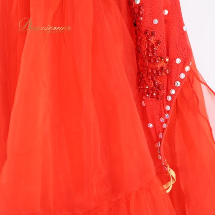 社交ダンス 衣装 白樺ドレス スタンダードドレス スタンダード ワンピース ドレス 赤 フロート レース フリル デモ 競技 レッド系 パーティ 発表会 ボリューム 豪華 デザイン 競技用 ダンス おしゃれ レディース