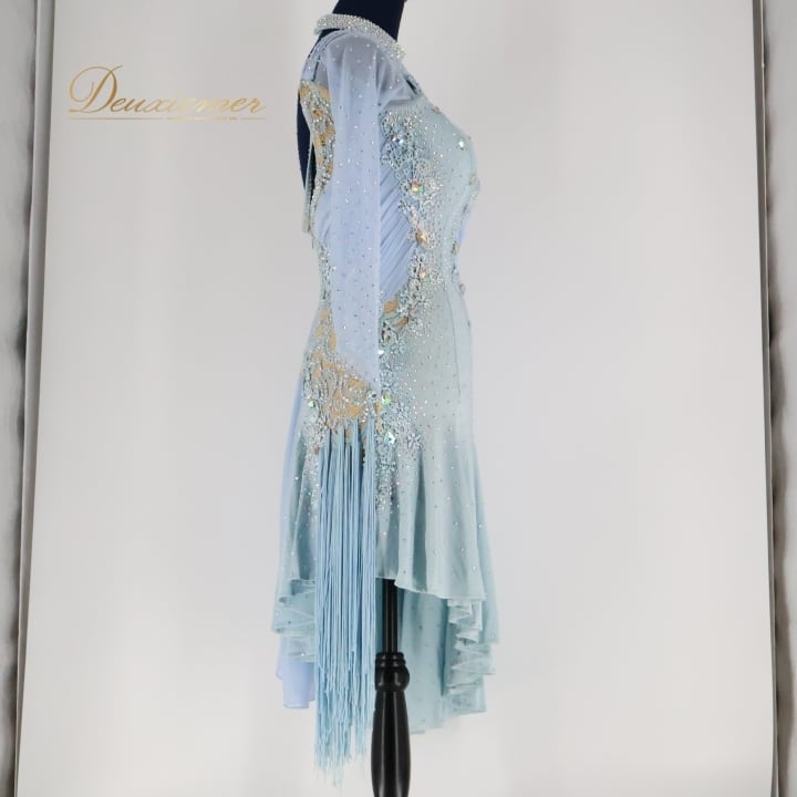 社交ダンス 衣装 ラテン ドレス ワンピース ラテンドレス 水色 紫 フリンジ デモ 競技 ダンス ブルー系 VeRTigo スパンコール フォーマル おしゃれ 女性用 パーティ ダンスウエア ステージ衣装 競技用衣装 上品 豪華