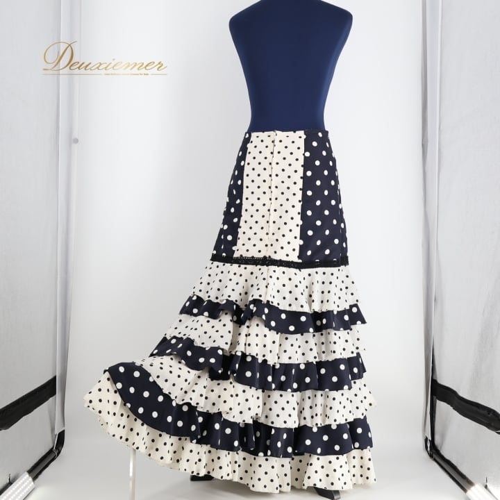 #フラメンコ #ファルダ #スカート #衣装 #ダンス衣装 #フラメンコ衣装 #ドット柄 #ホワイトネイビー #華やか #女性用衣装 #ステージ衣装 #ファッション #オシャレ #スポーツウェア #ダンス #パフォーマンス #衣装レンタル #アクティブウェア #フラメンコダンス #ENUTSU