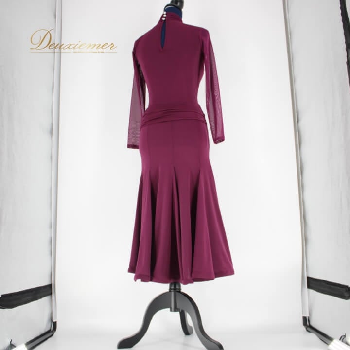 社交ダンス 衣装 スタンダード ドレス ワンピース レッスンウェア レディース オールシーズン パープル系 紫 ラインストーン 長袖 シンプル 無地 ディープパープル スタイルアップ ウエストマーク フィット感 伸縮性 レディースファッション ウェア オシャレ