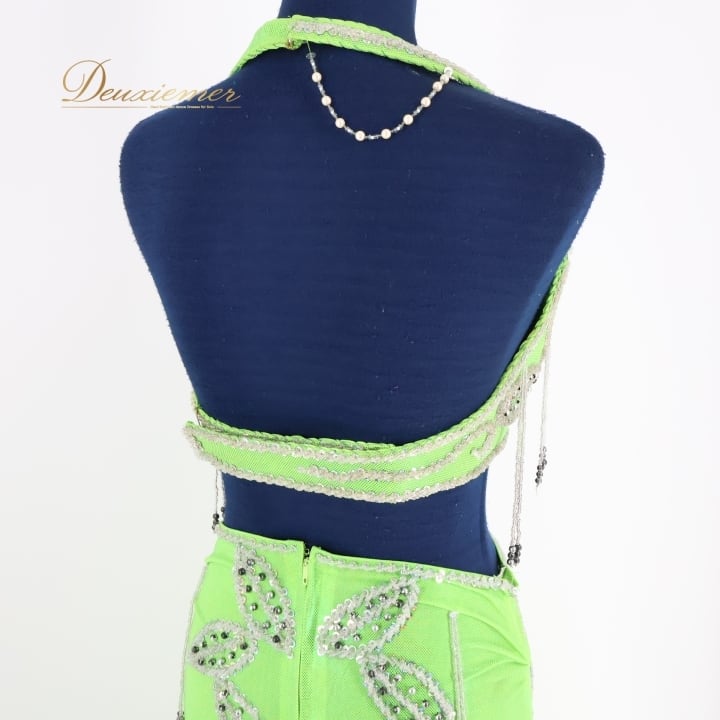 #ベリーダンス #オリエンタル衣装 #ダンス衣装 #ファッション #トルソー #スパンコール #ビーズ #黄緑色 #ダンスパフォーマンス #コスチューム #イベント衣装 #グラマラス #豪華 #華やか #エスニックファッション #異国情緒 #スリットスカート #トップスセット #おしゃれ #ENUTSU
