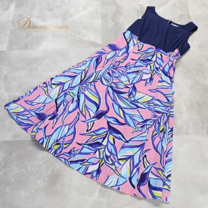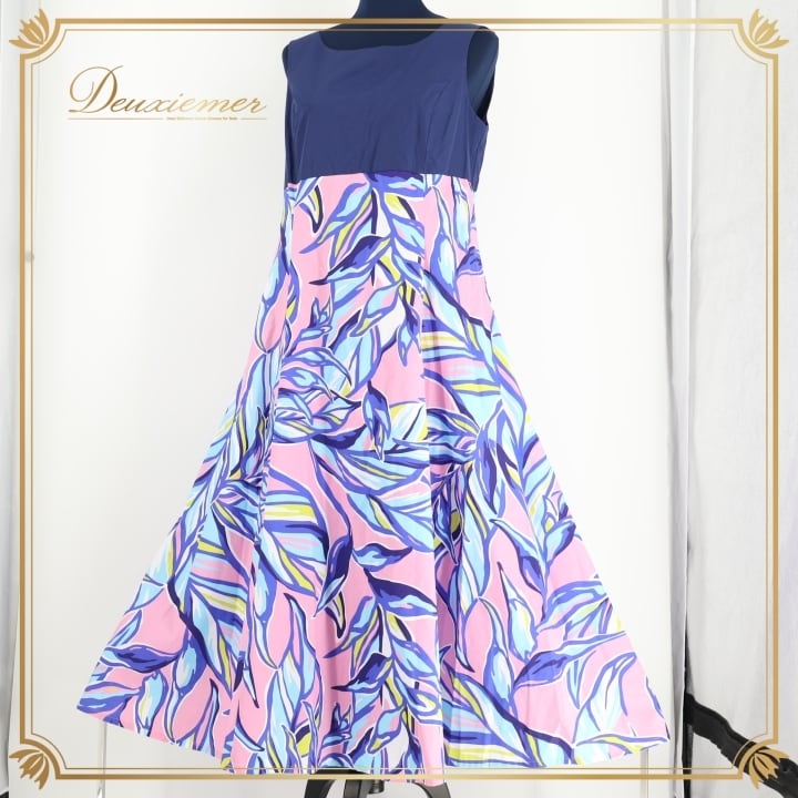 フラダンス 衣装 ワンピース ドレス ネイビー系 パウスカートショップ フラ ダンス ノースリーブ 紺 白 水色 ハワイアン アロハ 袖なし PauSkirtShop 日本製 ハレハワイイ ハワイアンプリント 軽い ブルー系 ピンク系 ホワイト系