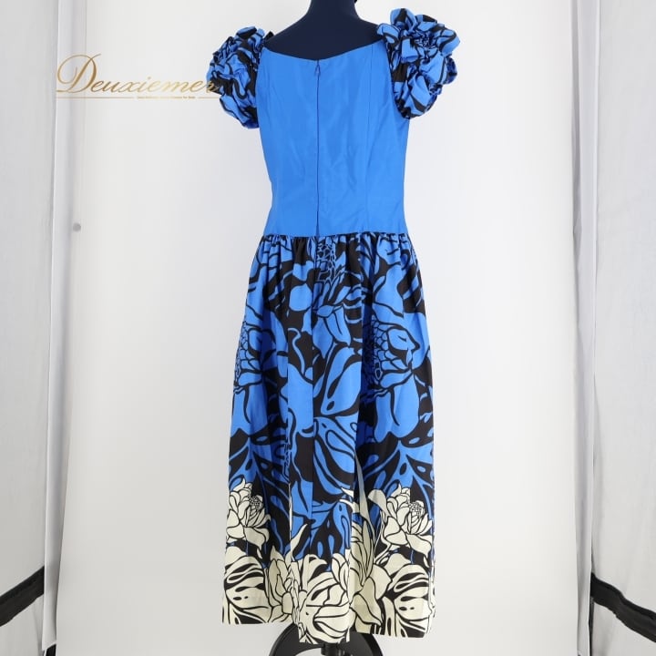#フラダンス衣装 #ワンピース #ドレス #日本製 #パウスカート #ブルー #ホワイト #ブラック #花柄 #女性用ファッション #ダンス衣装 #パーティードレス #夏服 #カジュアルファッション #トルソー #ファッションショー #ウエスト #おしゃれ #エレガント #ENUTSU