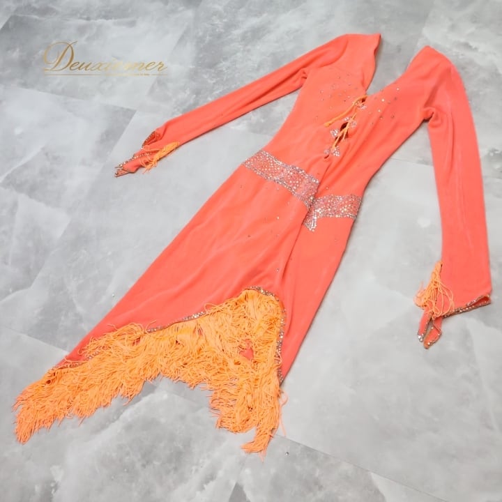 #社交ダンス #ラテン衣装 #ダンスドレス #ドレス #ワンピース #蛍光ピンク #動きやすい #ファッション #ダンスファッション #ストレッチ素材 #レオタード #衣装 #女性用トルソー #ダンススタイル #ダンス愛好家 #スポーツウェア #カラフル #ダンスライフ #オーダーメイド #ENUTSU