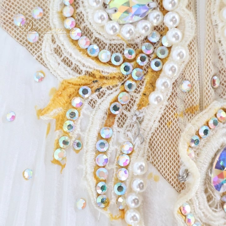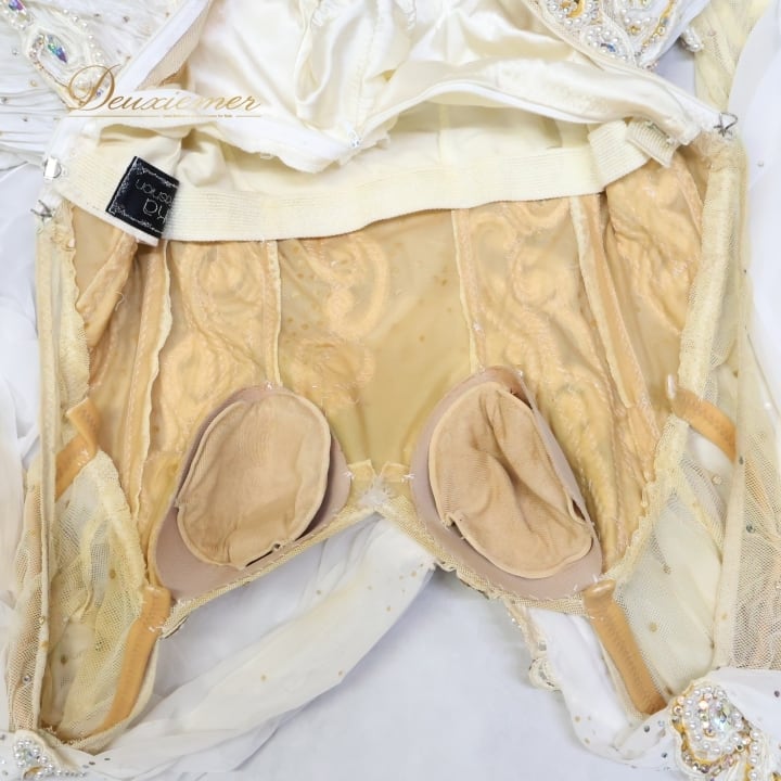 社交ダンス 衣装 タカダンス TAKADANCE スタンダードドレス スタンダード ドレス ワンピース ファー フロート 白 プリーツ アイボリー ホワイト系 デモ 競技 ダンス パーティ 発表会 エレガント ステージ衣装 おしゃれ パーティードレス 競技用ドレス 豪華 デザイン ふわふわ フリル