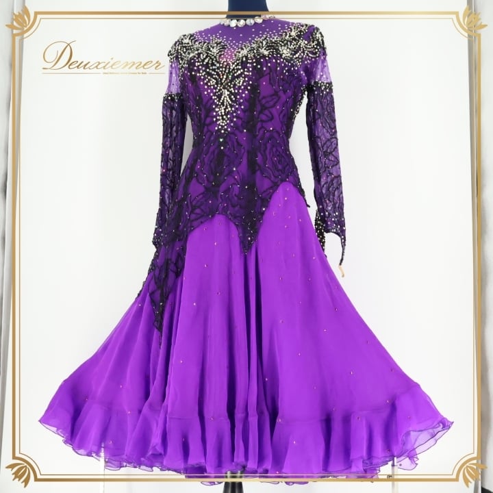 #社交ダンス #ダンス衣装 #ワンピース #ドレス #女性用 #トルソー #バイオレット #黒 #ファッション #ダンスパフォーマンス #舞台衣装 #特別な日 #大人のファッション #舞踏会 #エレガント #スタイル #ドレスアップ #シンプルスタイル #ダンスドレス #ENUTSU