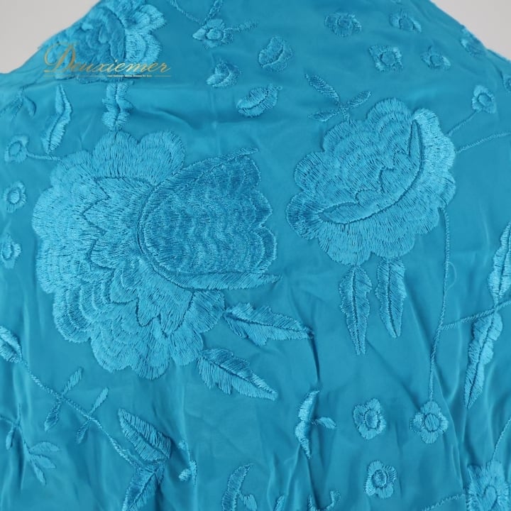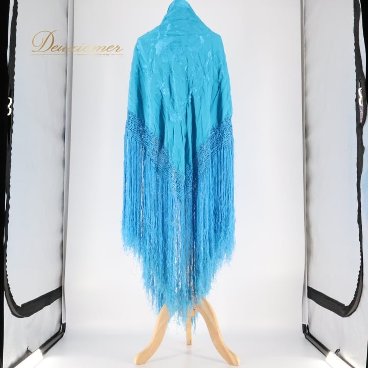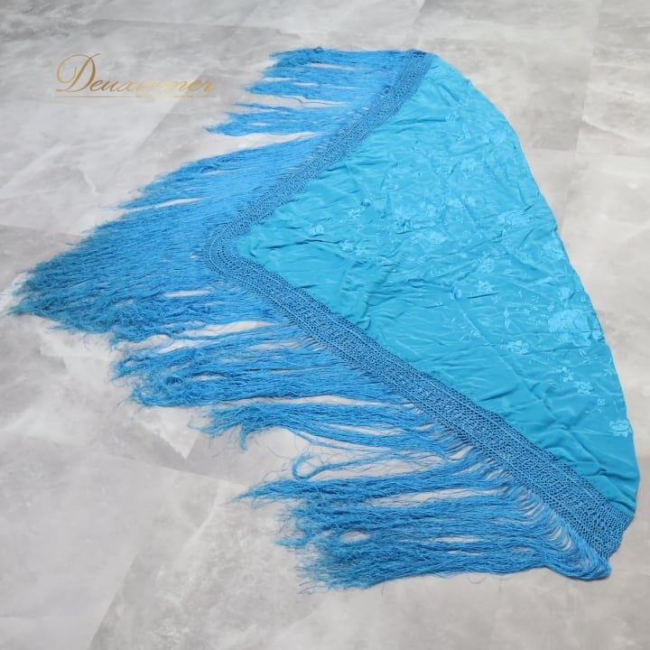 フラメンコ 衣装 マントン シージョ フレコ 刺繍 水色 青 装飾 小物 ダンス パーティ 飾り 発表会 レッスン ブルー系 ターコイズブルー フレコ長い 輝く色合い 舞台衣装 発表用 おしゃれ コスチューム パフォーマンス ダンス小物