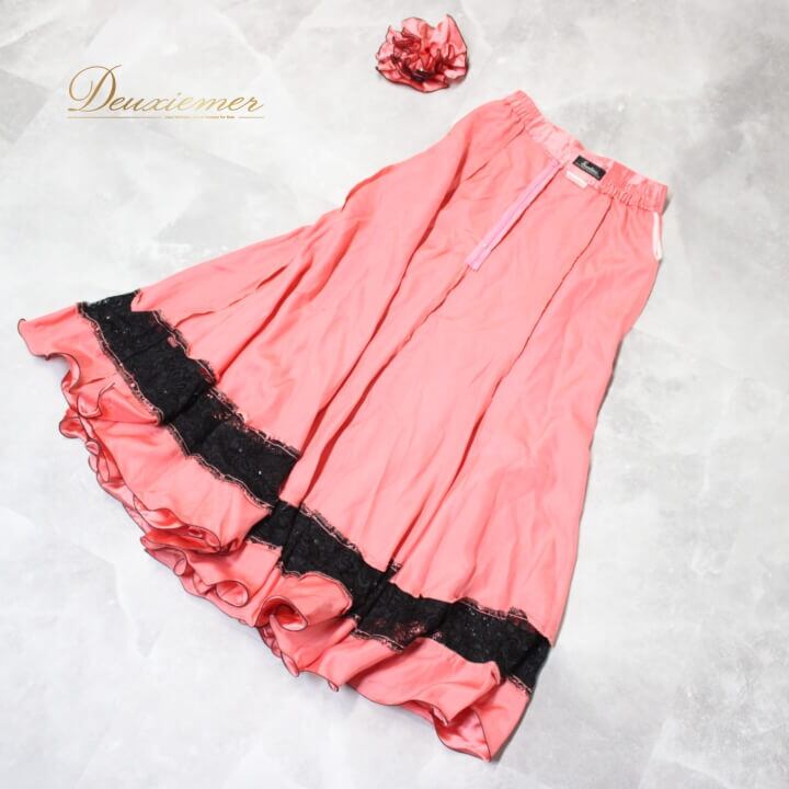 #社交ダンス #ダンス衣装 #ダンススカート #ファッション #日本製 #バイカラー #ラインストーン #コサージュ #おしゃれ #女性用 #ダンスウェア #ダンススタイル #ダンス用品 #ゆったり着れる #伸縮性 #ポリエステル #ナイロン #レーヨン #ピンクブラック #ENUTSU