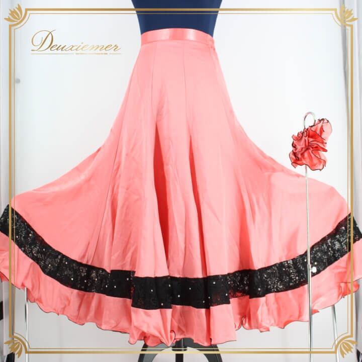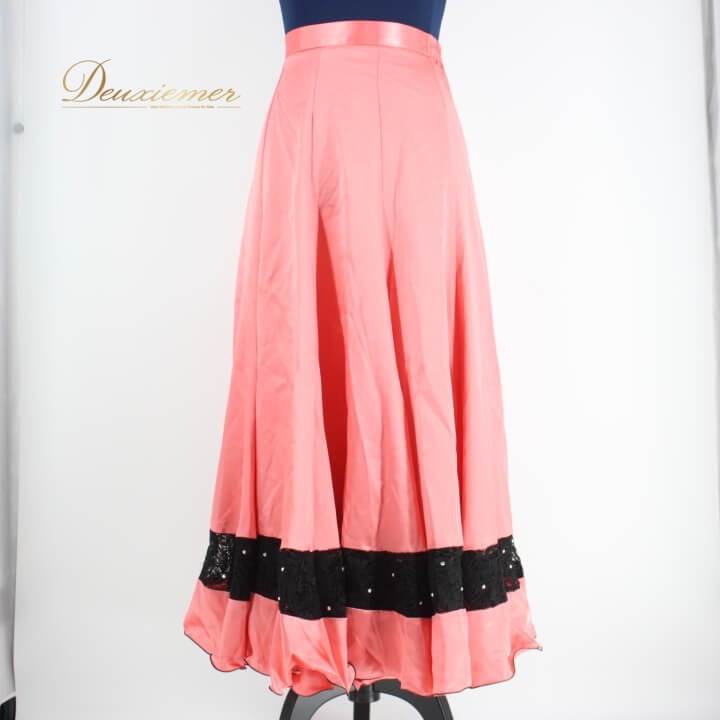 社交ダンス 衣装 スタンダード スカート レッスンウェア レディース オールシーズン Sanline サンリーヌ 黒 ピンク系 ブラック系 ラインストーン レース バイカラー 社交ダンス スカート おしゃれ バイカラー ピンク ブラック 光るラインストーン