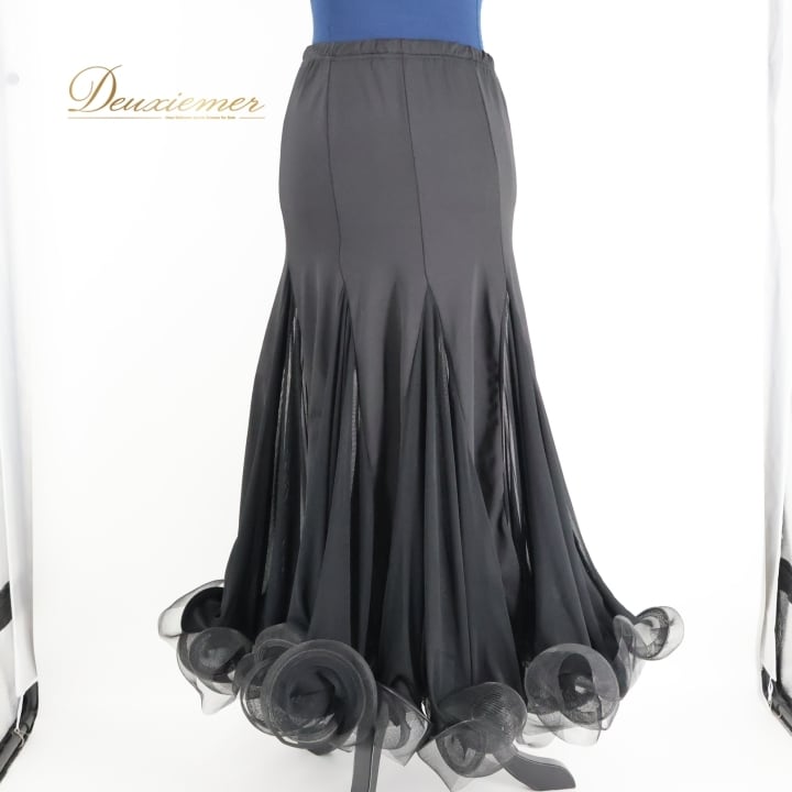 ベリーダンス オリエンタル 衣装 スカート ブラック系 黒 真っ黒 レース フリル ロング 無地 シンプル 光沢 練習 舞台 発表会 イベント コスチューム ストレッチ素材 豪華 おしゃれ ダンスコスチューム 女性用 発表会衣装
