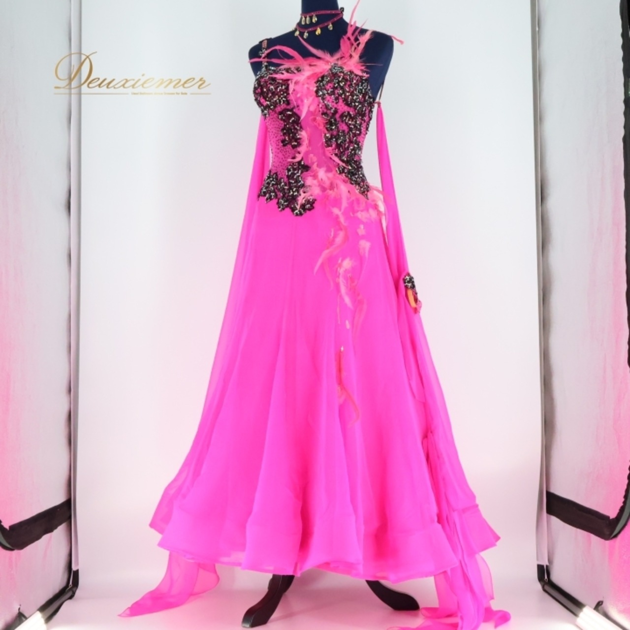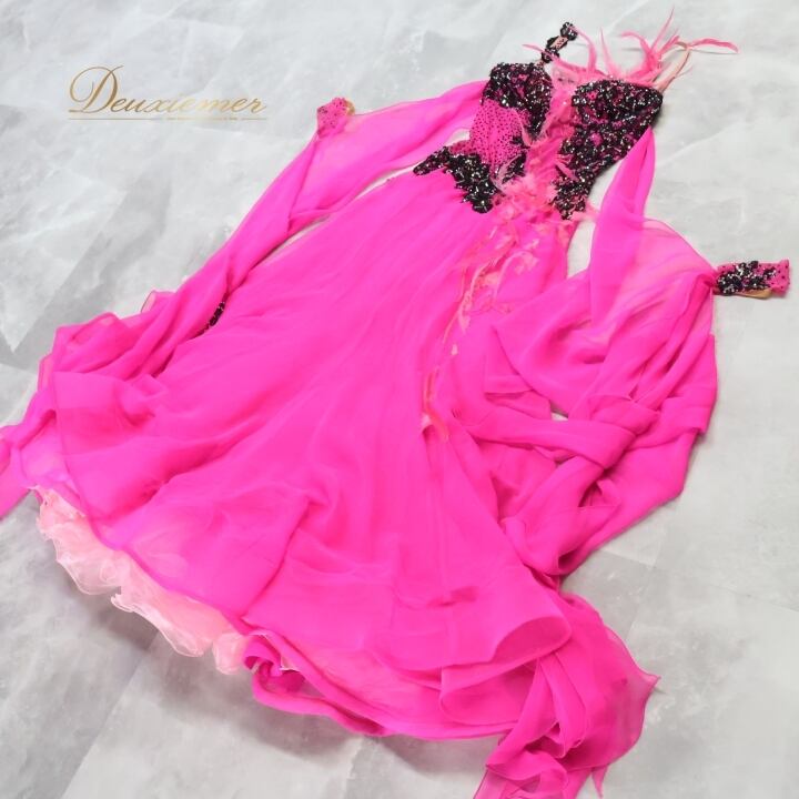 #社交ダンス #ダンス衣装 #ワンピース #ドレス #イタリア製 #濃いピンク #豪華ドレス #トルソー #ファスナー仕様 #伸縮性 #胸パッド #羽付き #ダンススタイル #パフォーマンス #舞踏会 #ダンスイベント #レオタード #フィットネス #ファッション #ENUTSU
