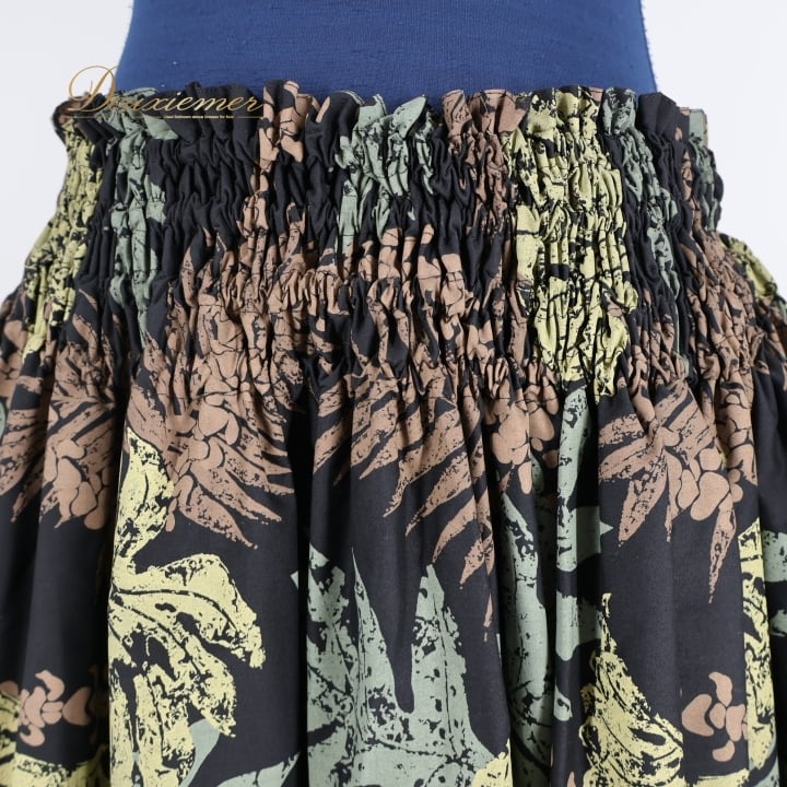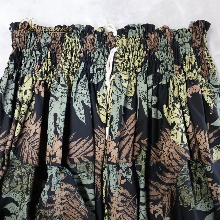 フラダンス 衣装 パウスカート ブラック系 シングル フラ ダンス ハワイアン レッスン 葉っぱ柄 黒 緑 黄 茶 ボタニカル アロハ ハワイアンプリント スカート ふんわり ブラウン系 カーキ系 イエロー系