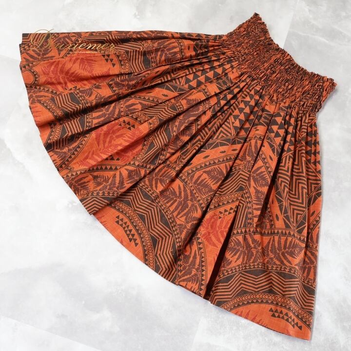 フラダンス 衣装 パウスカート オレンジ系 マハロサービス シングル フラ ダンス 橙 黒 レッスン ハワイアン アロハ スカート 落ち着いた色 ふんわり ハワイアンプリント 日本製 ブラック系