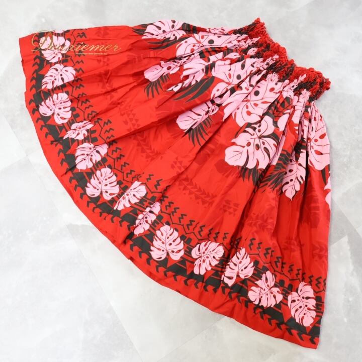 フラダンス 衣装 パウスカート レッド系 アロハエミカ シングル ハワイアン フラ ダンス レッスン 赤 黒 アロハ モンステラ柄 鮮やか 華やか Aloha Emika 日本製 ハワイアンプリント スカート ふんわり ブラック系 ピンク系