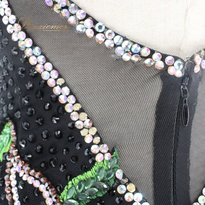 社交ダンス 衣装 エダスー edda hsu スタンダード ドレス スタンダードドレス ワンピース フロート 黒 デモ 競技 ダンス ブラック系 緑 グリーン パーティ 発表会 高級感 おしゃれ デザイン 大人っぽい 競技用 ドレス衣装 パーティドレス 発表会衣装 フォーマル ステージ衣装