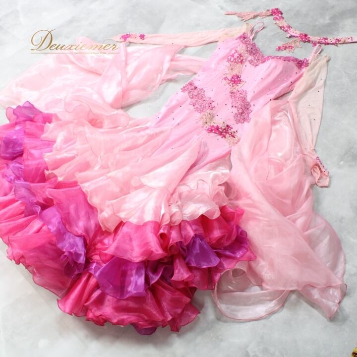#社交ダンス #ダンス衣装 #ドレス #ワンピース #フリル #ピンクドレス #スカート #ファッション #モダンダンス #ダンススタイル #レディースファッション #パーティードレス #ダンスコスチューム #おしゃれ #可愛い服 #ウエストマーク #ダンスイベント #特別な日 #キッズダンス #ENUTSU