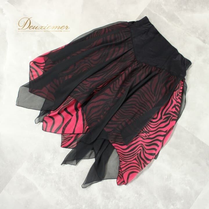 社交ダンス 衣装 スタンダード スカート レッスンウェア レディース オールシーズン 黒 ブラック系 ピンク系 バイカラー 透け感 派手 目立つ フレアスカート ダンス ストレッチ おしゃれ 日本製 おすすめ