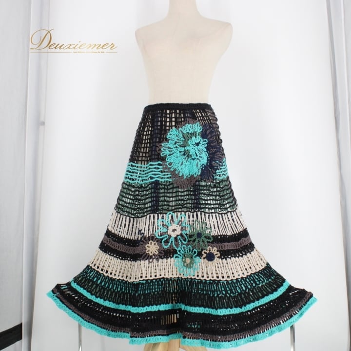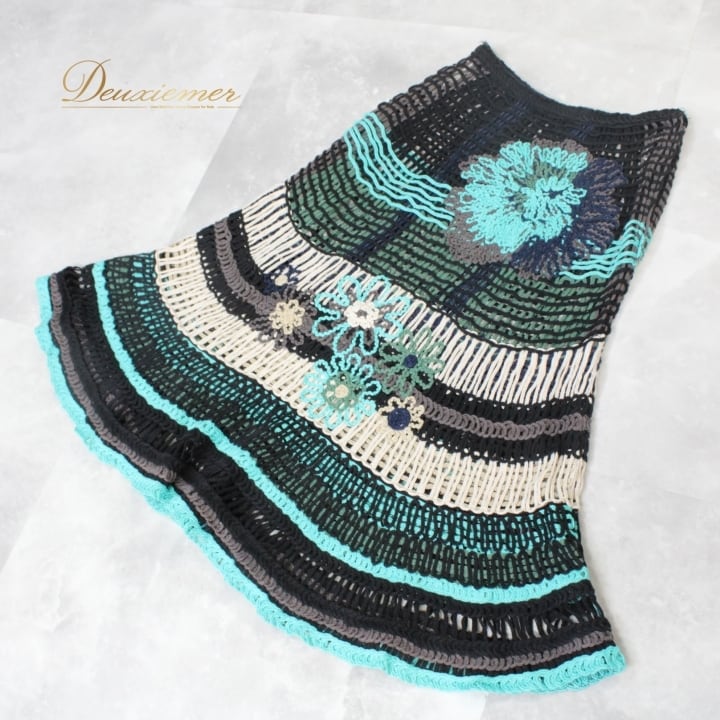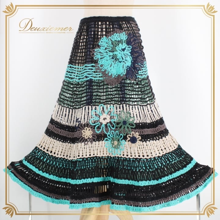 レディース トクコプルミエヴォル TOKUKO 1er VOL スカート ニット tokuko トクコ 重ね着 黒 毛糸 柄 模様 編み込み ブラック系 ブルー系 花モチーフ おしゃれ スカート レディースファッション 防寒 冬 かわいい カジュアル 編み物