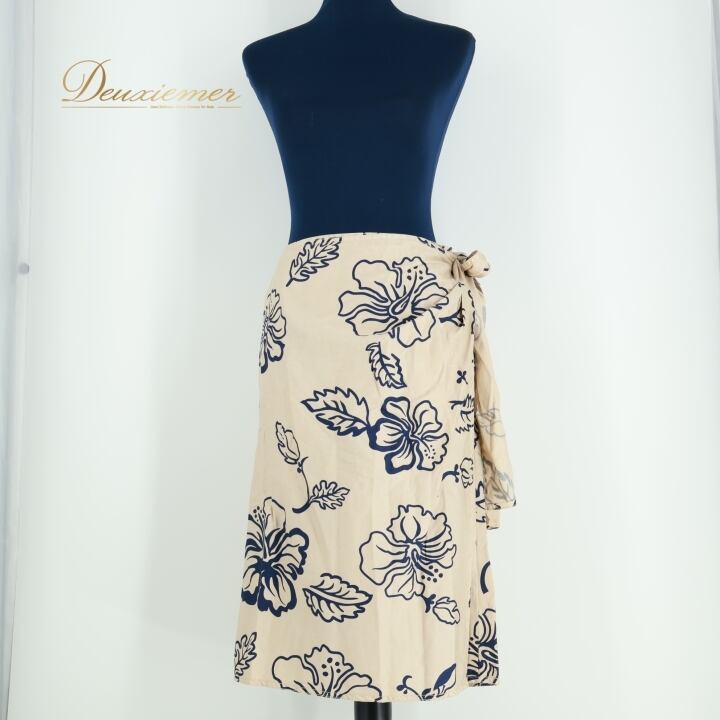 フラダンス 衣装 スカート ベージュ系 フラ ダンス ハイビスカス柄 ハワイアン アロハ ひざ丈 花柄 紺 リボン かわいい 華やか ハワイアンプリント ネイビー系
