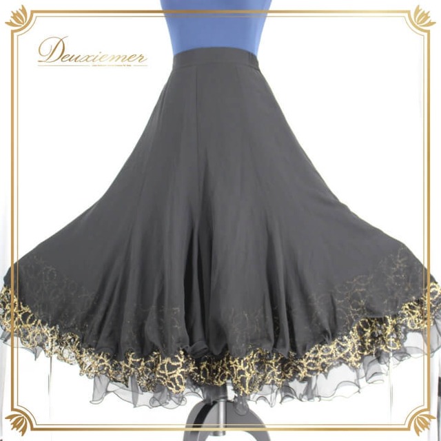 社交ダンス 衣装 スタンダード スカート レッスンウェア レディース オールシーズン ブラック系 パープル系 黒 紫 ラインストーン スパンコール 社交ダンス スカート ダンスウェア おしゃれ フレアスカート クラシック ダンス衣装 花模様 エレガント 伸縮性