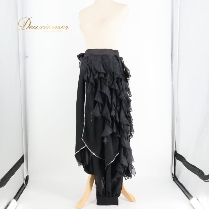 ベリーダンス 衣装 ズボン ハーレムパンツ ワイドパンツ ヒップスカーフ まとめ売り 全2点 セット ブラック系 黒 ラメ レース 練習 舞台 発表会 ヒップスカーフ フリル おしゃれ セットアップ 軽量 リーズナブル ズボンタイプ スポーツウェア ダンス衣装