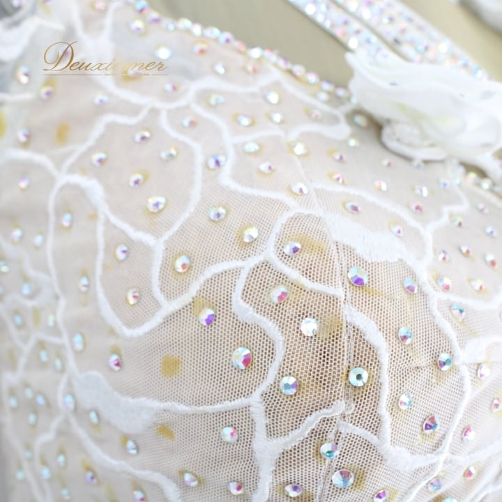 社交ダンス 衣装 スタンダード ドレス スタンダードドレス ワンピース 白 フロート デモ 競技 ダンス パーティ 発表会 花 ホワイト系 上品 デザイン スカート ふんわり 競技用 パーティー用 発表会用 レディース おしゃれ フォーマル