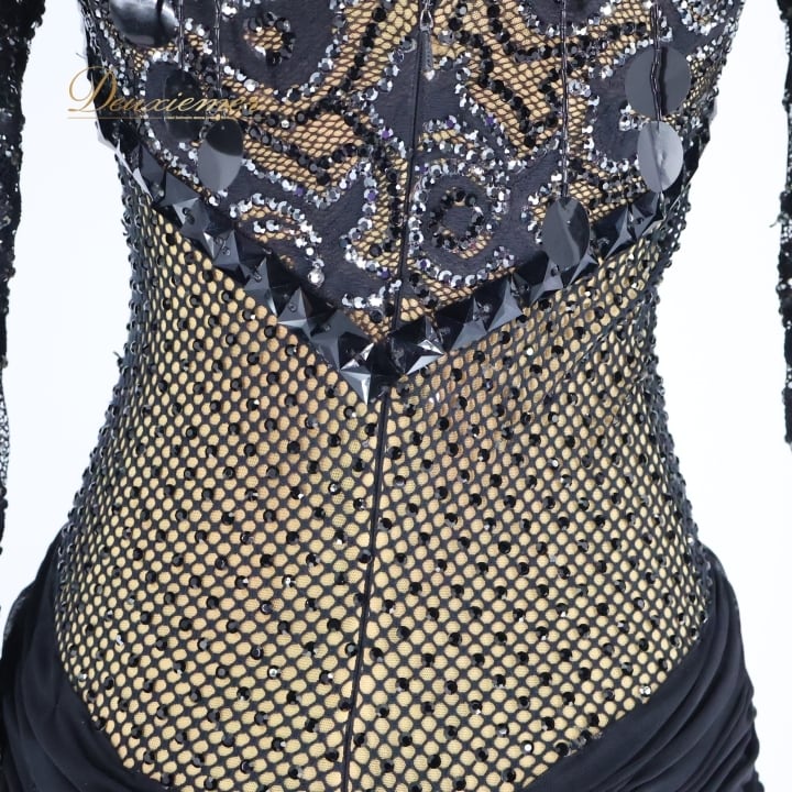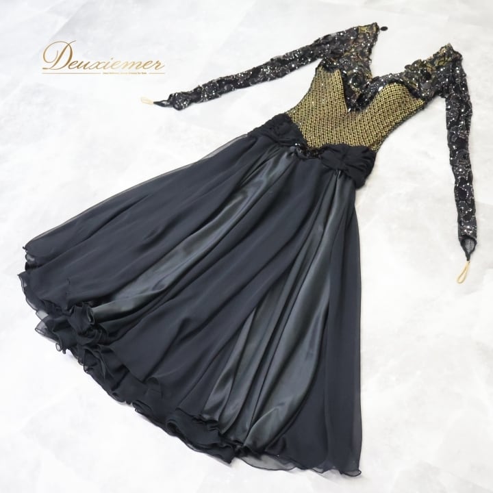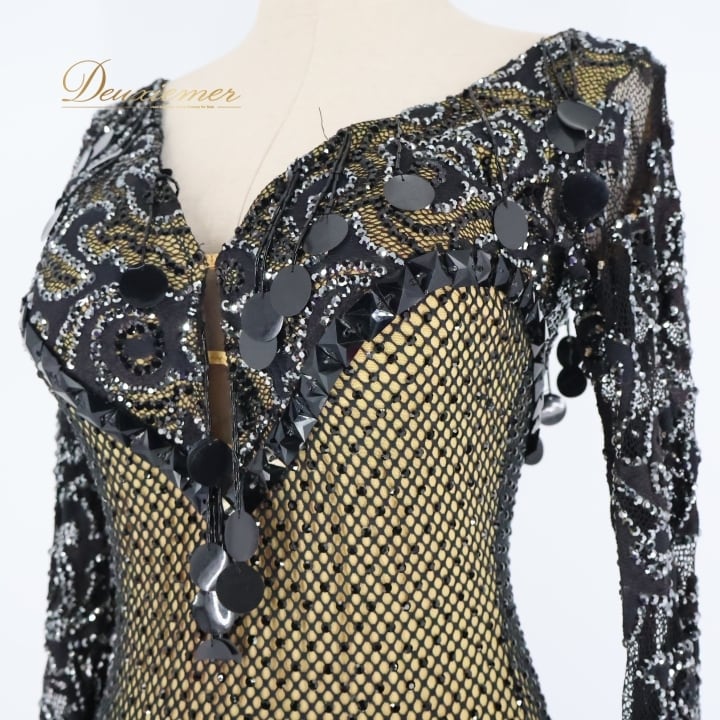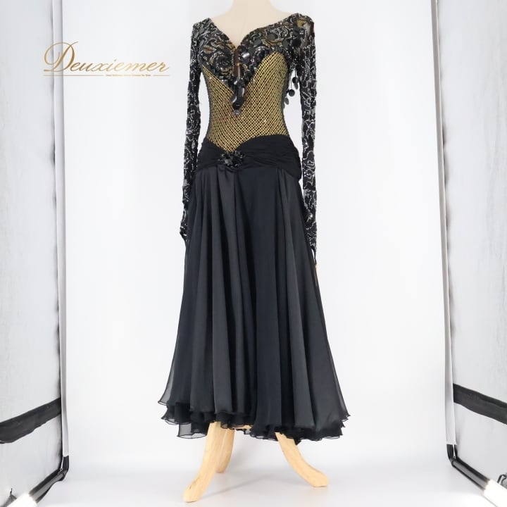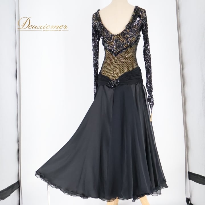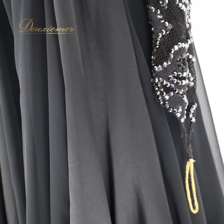 社交ダンス 衣装 DSI スタンダードドレス スタンダード ドレス ワンピース 黒 レース デモ 競技 パーティ 発表会 綺麗 上品 高級感 ブラック系 おしゃれ エレガント 競技用ドレス ドレスアップ 演技用 舞台衣装 魅力的 大人用