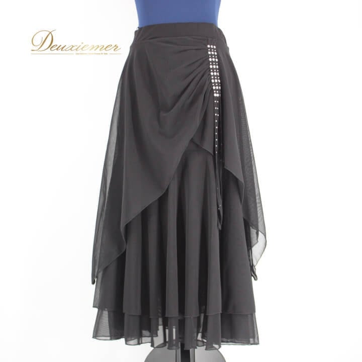 社交ダンス 衣装 スタンダード スカート レッスンウェア レディース オールシーズン ACROSS 黒 ブラック系 ラインストーン シンプル 透け感 エレガント おしゃれ ダンスウェア レディースファッション パーティー ラインストーン装飾 着心地良い