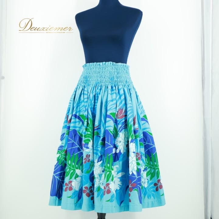 フラダンス 衣装 パウスカート ブルー系 ミウミントアロハ シングル フラ ダンス 水色 青 緑 白 赤 花柄 華やか レッスン 練習 明るい 爽やか かわいい ハワイアンプリント アロハ スカート ふんわり ハワイアン グリーン系 ホワイト系 レッド系