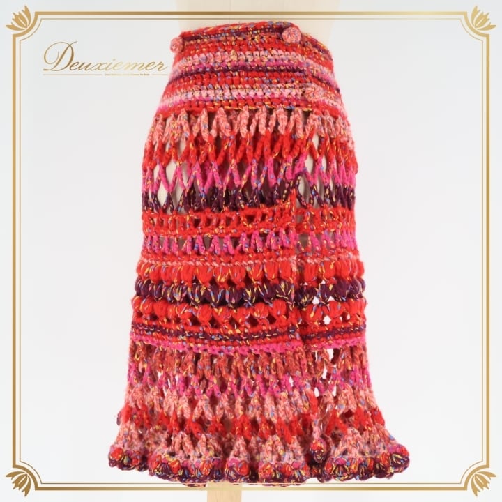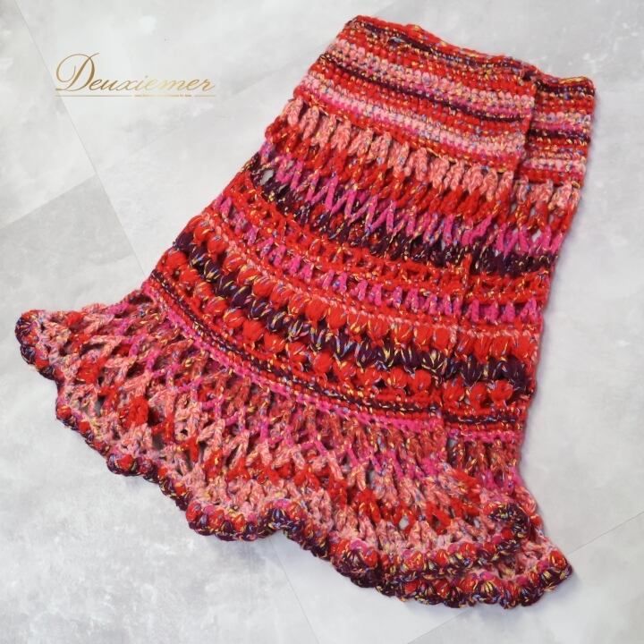 レディース トクコプルミエヴォル TOKUKO 1er VOL スカート 巻きスカート 毛糸 ニット 赤 オレンジ tokuko トクコ レッド系 オレンジ系 伸縮性 防寒 重ね着 おしゃれ デザイン カジュアル 冬 ファッション レディーススカート カラフル 編み物