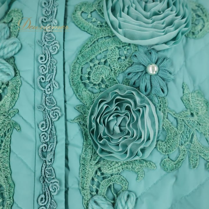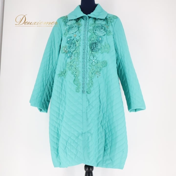 レディース トクコプルミエヴォル TOKUKO 1er VOL コート ダウン 上着 ブルゾン 青緑 キルト 花 ビーズ 装飾 長袖 軽い グリーン系 ブルー系 おしゃれ フラワー 秋冬 レディースファッション