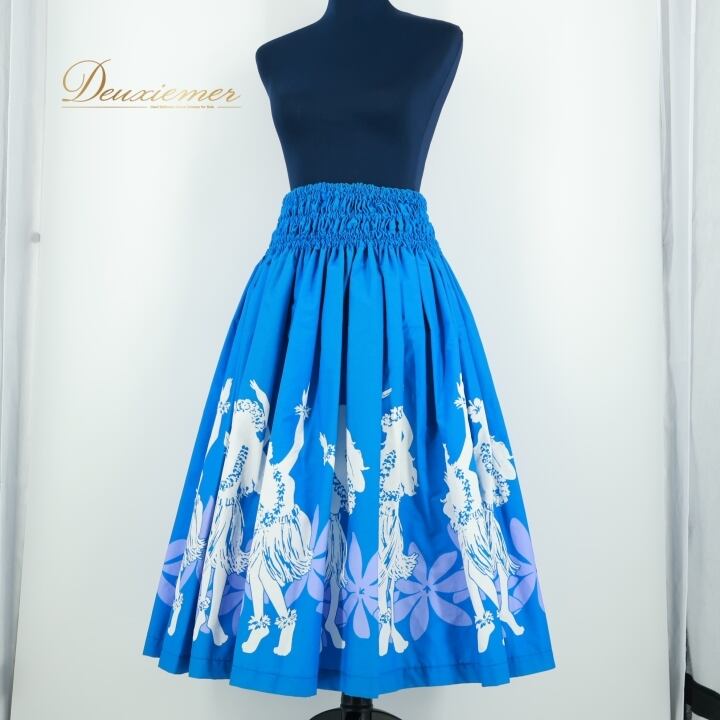 フラダンス 衣装 パウスカート ブルー系 フラ ダンス ハワイアン レッスン 水色 白 フラガール 爽やか 明るい アロハ かわいい ハワイアンプリント 鮮やか スカート ふんわり ホワイト系