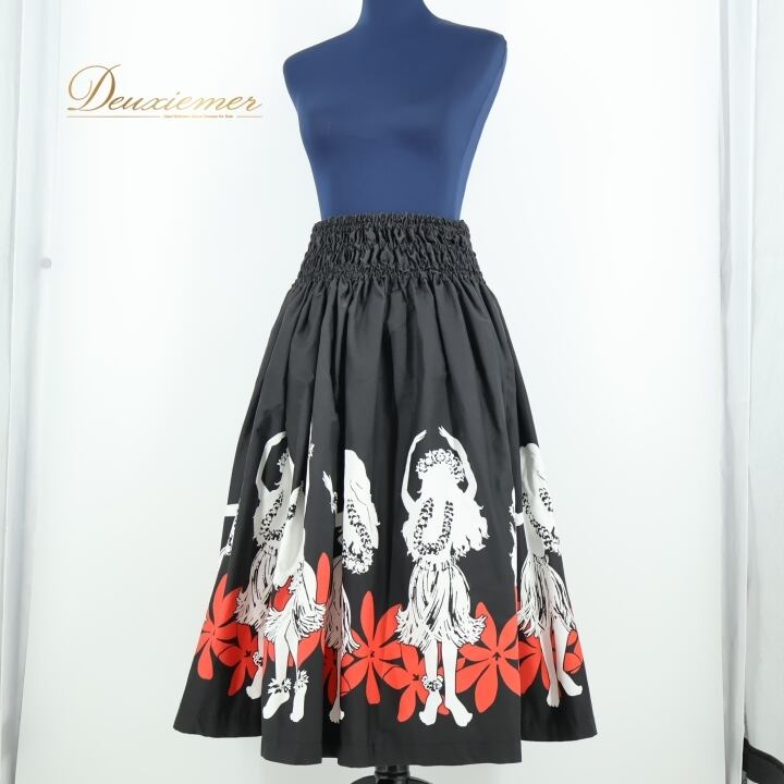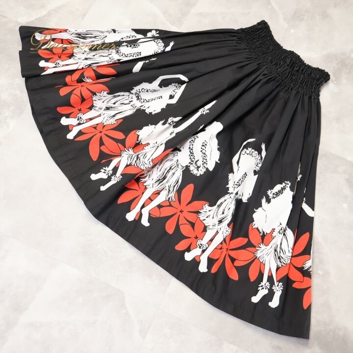 フラダンス 衣装 パウスカート ブラック系 フラ ダンス レッスン シングル ハワイアン フラガール 黒 白 赤 華やか 練習 アロハ ハワイアンプリント 鮮やか かわいい スカート ふんわり ホワイト系 レッド系