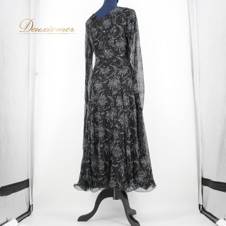 #社交ダンス #ダンスドレス #ダンス衣装 #レイリーナ #ブラックドレス #グレードレス #ラインストーン #フロート付き #女性用衣装 #ダンスパフォーマンス #舞台衣装 #ダンスファッション #エレガント #伸縮性素材 #おしゃれ #パーティードレス #ドレスコーデ #ダンススタイル #コスチューム #ENUTSU