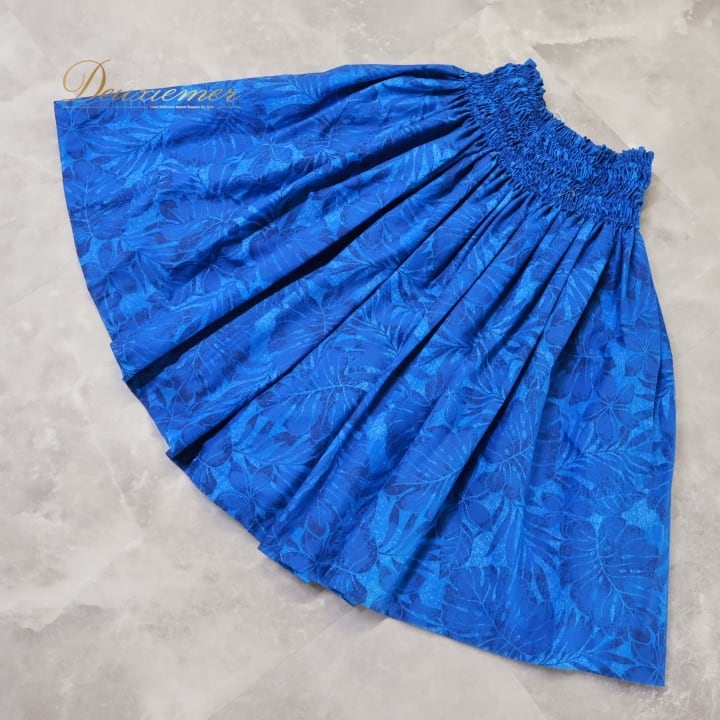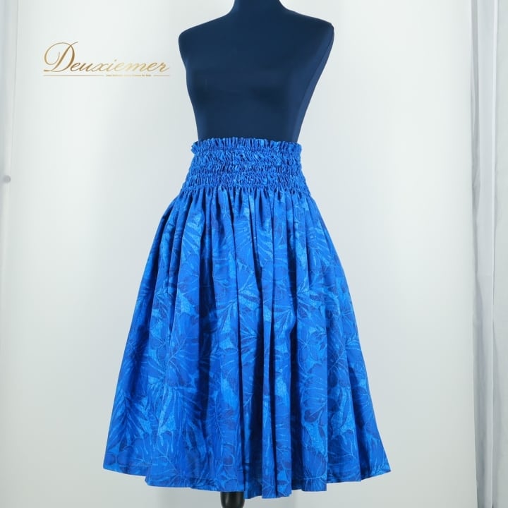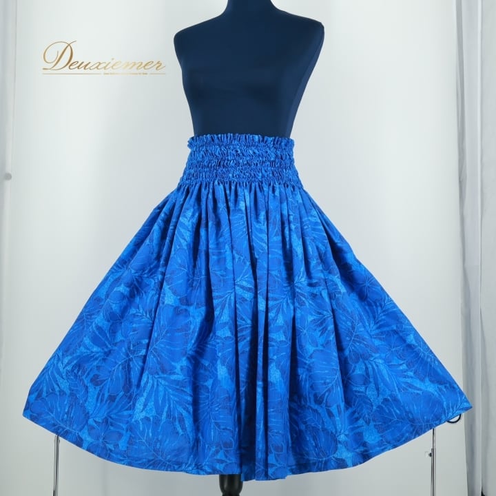 フラダンス 衣装 パウスカート ブルー系 シングル フラ ダンス 青 モンステラ柄 レッスン 練習 鮮やか 華やか ハワイアン アロハ かわいい 花柄 ハワイアンプリント スカート ふんわり