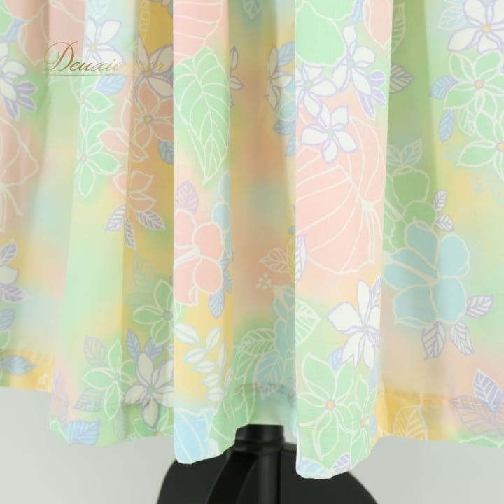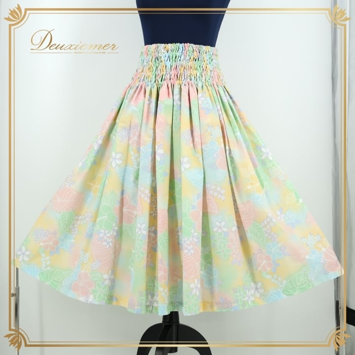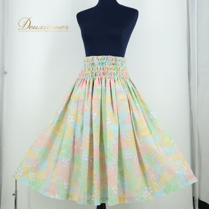 フラダンス 衣装 パウスカート グリーン系 フラ ダンス シングル パステル 花柄 レッスン 練習 淡い かわいい ハワイアンプリント カラフル アロハ 緑 白 黄 青 ハワイアン スカート ふんわり イエロー系 ブルー系 ピンク系 ホワイト系