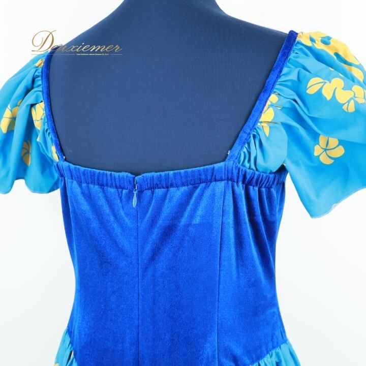 #フラダンス #衣装 #ドレス #ワンピース #花柄 #ブルー #イエロー #高級感 #ファッション #ポリエステル #綿 #衣装レンタル #フラダンス衣装 #カラフル #女性用トルソー #サイズフリー #夏祭り #パーティー #ダンス衣装 #ENUTSU
