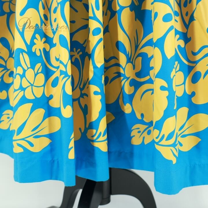 フラダンス 衣装 ワンピース ドレス ブルー系 フラ ダンス 花柄 青 水色 黄 鮮やか ハワイアン アロハ 華やか 爽やか ハワイアンプリント かわいい イエロー系